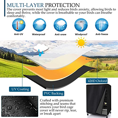 TESSUTO DAL DESIGN UNICO: La nostra copertura gabbia pappagalli è realizzata in tessuto Oxford 420D.La Coperture per gabbie ha un'eccellente elasticità, resistenza alla luce e resistenza all'abrasione, buona permeabilità all'aria e può essere facilmente lavata.La copertura gabbia uccelli ha eccellenti funzioni impermeabili e a prova di luce.