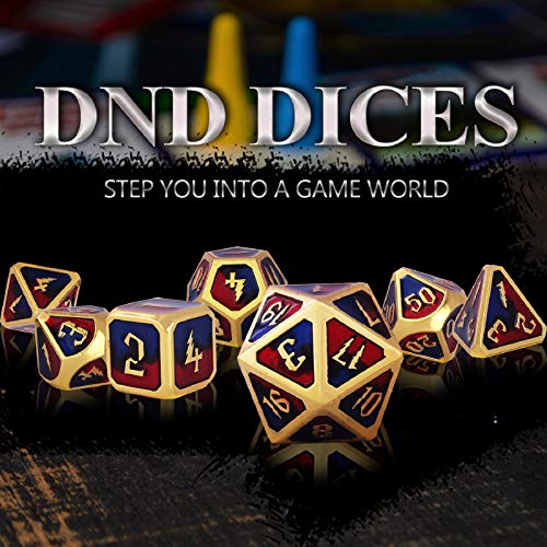 Prodotto di Alta Qualità: Questo set di dadi D&D in metallo pesante sono realizzati in lega di alluminio e zinco. Non importa quante volte vengono colpiti i poliedrici dadi RPG, possono essere conservati bene senza danni e possono essere utilizzati continuamente.