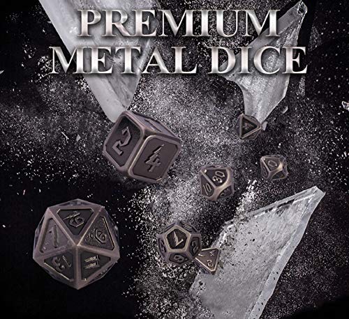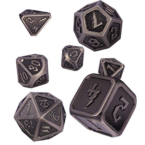 Schleuder Set di Dadi DND in Metallo 7 Pezzi Dice D&D, Poliedrici Dadi da Gioco di Ruolo, Dungeons & Dragons, Rpg, Gioco da Tavolo, Insegnamento della Matematica (Antique Nickel)