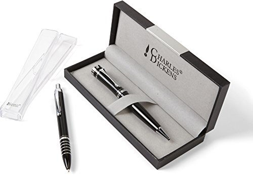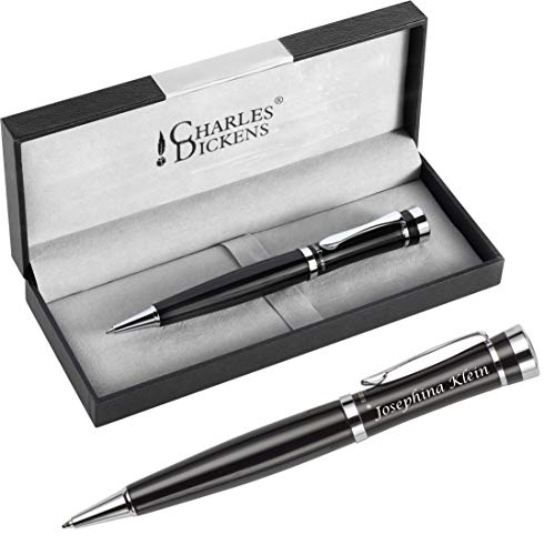 Schmalz Charles Dickens Metallo Penna a Sfera con Incisione - Modello Rochester Elegante Rotazione Nero Miniera - Regalo per Compleanno con Geschenk-Etui