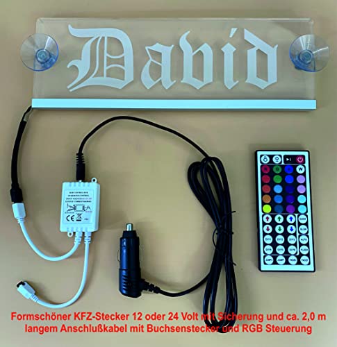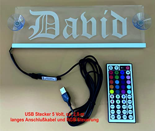 Schmalz Werbeservice Trucker Nome Camion Taglia 40x10 cm con Controller RGB 22 Funzioni - LED Acrilico Targa Luminosa 12V o 24V - 5V Attacco USB