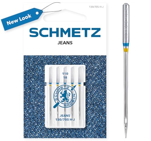 SCHMETZ Aghi per macchine da cucire | 5 Aghi per jeans | 130/705 H-J | Finezza ago: 110/18 | utilizzabile su tutte le comuni macchine da cucire per uso domestico