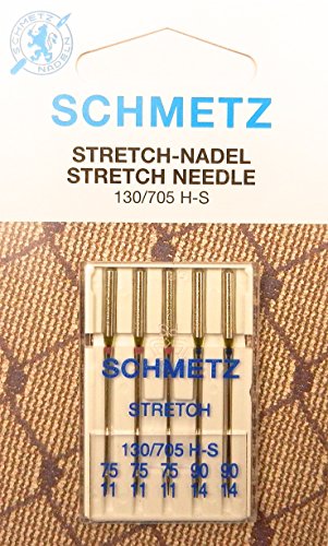Schmetz 5 aghi stretch per macchine da cucire (a pistone piatto), per tessuti elasticizzati, 130/705 H-S, spessore 75/11 / 90/14