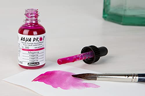 QUALITÀ: La linea AQUA DROP contiene 24 acquarelli liquidi in flaconcini di plastica da 30 ml con pipetta, a base di pigmenti, altamente resistenti alla luce e diluibili con l'acqua. Tutte le tonalità AQUA DROP possono essere mescolate con tutti i colori ad acquarello, come HORADAM AQUARELL e AKADEMIE Aquarell. Inoltre, la gamma comprende il Opaque White che può essere usato puro come un bianco coprente o mescolato con AQUA DROP come illuminante sia con il pennello o con la penna.