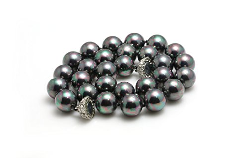 Schmuckwilli Tahiti donna conchiglia Perle shell Collane di Mallorca perle nere con lucentezza viola chiusura magnetica vera conchiglia 50cm dmk3014-50 (14mm)