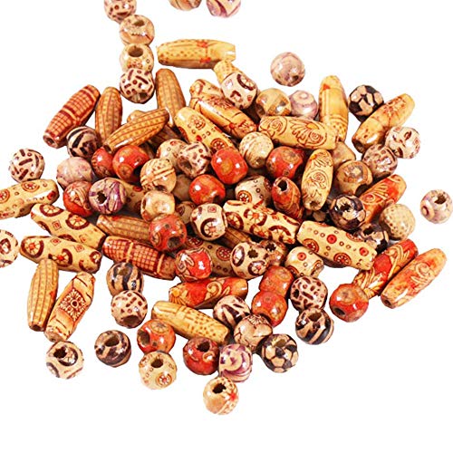Schneespitze 200 Pezzi Perle Legno Due Forme,Rotonde Forma di Riso Forme Perline di Legno per DIY Collana Braccialetti Capelli Mestieri Bigiotteria