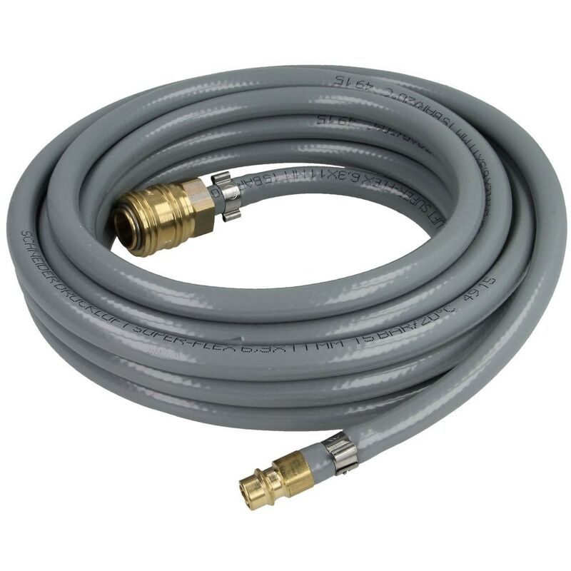 Il tubo dell'aria compressa è dotato di un collegamento rapido e di una punta bloccabile. È particolarmente resistente all'aria compressa oleosa e resistente all'invecchiamento grazie al materiale esterno rinforzato con treccia. è molto flessibile, anche a bassa temperatura. Il collegamento rapido ha un grande passaggio d'aria. Produttore: Schneider Lunghezza [mm]: 5000 EAN: 4011666402226 Pressione max. [bar]: 20 Diametro interno [mm]: 6,3 Diametro esterno [mm]: 11 N° art. OEG: 350730030
