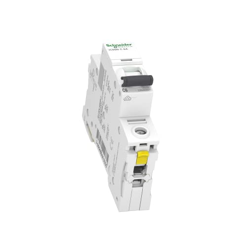 Schneider Electric A9F04106 IC60N Interruttore automatico magnetico termico, 1P, 6A, curva C, 78,5 mm x 18 mm x 91 mm, Bianco