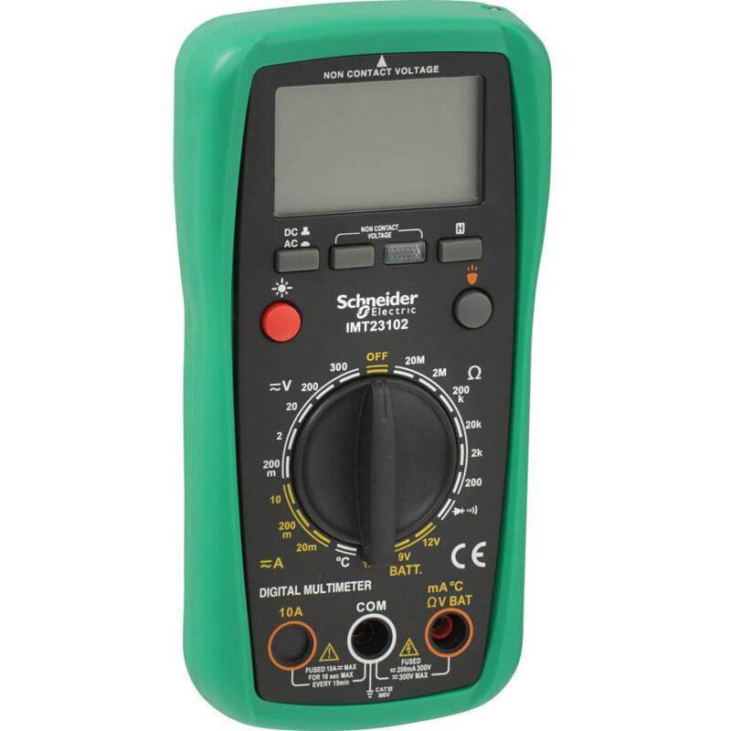 Dettagli tecnici Calibrato di fabbrica senza certificato Dimensione del prodotto, larghezza 85 mm Dimensione del prodotto, lunghezza 39 mm Dimensioni (L x L x A) 39 x 85 x 165 mm Dimensioni prodotto Altezza 165 mm Misura di corrente DC Peso 290 g Tipo prodotto Multimetro portatile A TAGLIENTE LATERALE SCHWAIGER CON23202 THORSMAN Digital Multimetro digitale - categoria III - 300 V, multimetro digitale con display LCD con retroilluminazione e dati funzione Hold. Un potente multimetro digitale per la misurazione di tensione, corrente, resistenza, diodo, continuità, indicazione del livello della batteria e temperatura. Funzioni: ? Indicatore dello stato della batteria, ? Controllo di tensione alternata senza contatto, ? Display LCD retroilluminato, ? Riconoscimento di conduttori di corrente, ? Funzione hold dati, ? Supporto integrato per utilizzo senza mani intervallo tensione continua: 0,2/2/20/200/300 V, intervallo tensione alternata: 0,2/2/20/200/300 V, corrente continua/alternata: 20