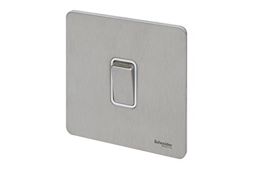 Schneider Electric - Mascherina piatta con interruttore intermedio in acciaio INOX, senza viti, rating 16AX, con inserto di colore bianco