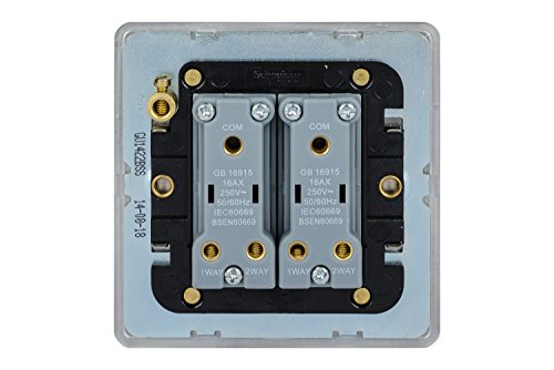 Schneider Electric - Nuovo interruttore doppio senza viti 16AX, 2 vie, mostra piatta, acciaio INOX c