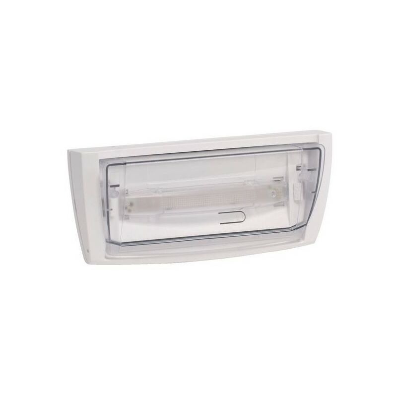 Tipo di prodotto o componente: applique a LED. Flusso luminoso: 45 lm LED 2 x 1 W in emergenza / 45 lm LED 2 x 1 W in modalità permanente. Potenza assorbita in va: 2 W 24/48/110/220 V DC LED 2 x 1 W / 5 VA 230 V AC LED 2 x 1 W. Altezza: 105 mm. Larghezza: 235 mm. Profondità: 80 mm. Tipo di controllo: Tramite la sorgente centralizzata o il telecomando TBS