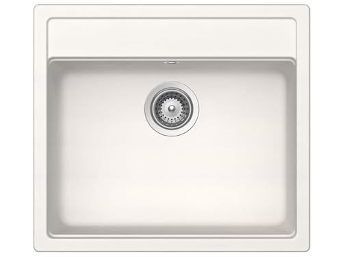 Shock: il resistente lavello in quarzo composito con dimensioni di 57 x 51 cm in bianco in materiale premium Cristadur include un lavello quadrato senza gocciolatoio