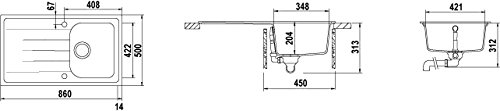 Schock Lithos D100A14N Lavello, Cristalite Plus, Nero Mat Opaco, 86 x 50 x 20 cm
