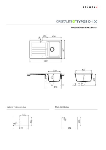 Schock Typd100Ugne, Lavello Typos D-100, Montaggio Sottopiano Nero
