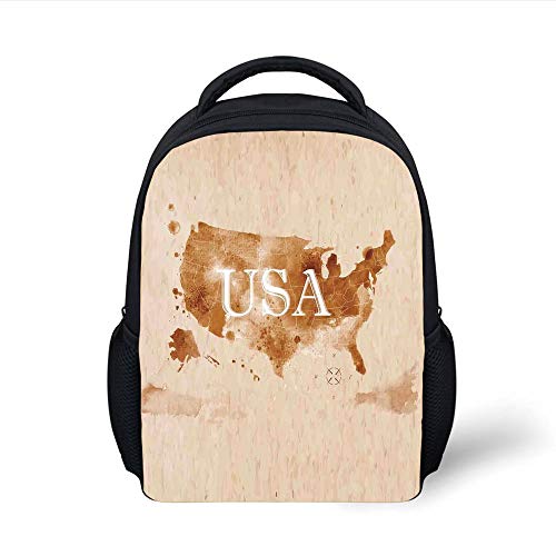 Kids School Backpack Americana,Early American Retro Map Of The Country Southwest And Alaska Image Print,Peru Brown White Plain Bookbag Travel Daypack