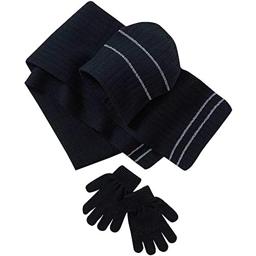 Scelta di opzioni: set di 3 pezzi, cappello, sciarpa e guanti con strisce argentate metalliche;