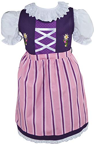 Schrammel Grembiule per bambini dirndl con fioriera Dirndl per feste, Strisce lilla., 74-80 cm
