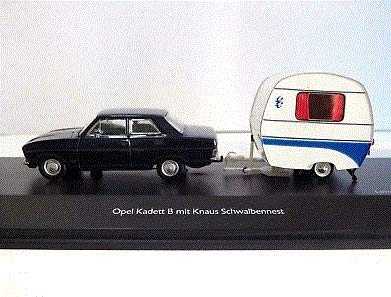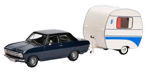 Schuco Opel Kadett B Blue + Caravan 1/43