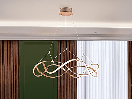 Questa lampada originale ha forme incredibili che renderanno la tua stanza ancora di più. Il suo colore dorato dà un tocco unico che riuscirà ad armonizzare la decorazione della stanza dove è posizionata.Ha tecnologia LED ed è realizzata in alluminio spazzolato, con una finitura in oro rosa, ha dettagli in finitura cromata. È regolabile in altezza e con diffusori in silicone opale. 45 W LED, 4050 lm, 3000 K. Dimmerabile.
