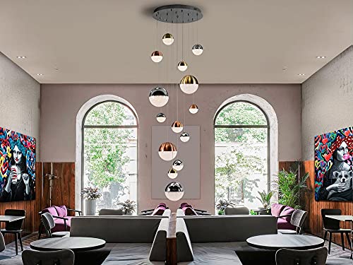 Schuller Sphere - Dimmerabile a 14 luci a LED integrate con luce a sospensione a grappolo, rame, ottone satinato, cromo, controllo Bluetooth