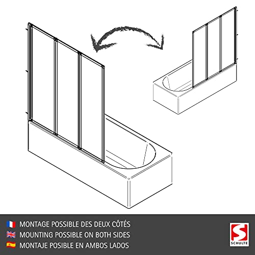 Schulte parete per vasca da bagno l.127 x a.140 cm, colore nero, 3 ante pieghevoli (47+40+40), sopravasca senza forare, girevole 180° sulla parete, vetro di sicurezza 3 mm trasparente