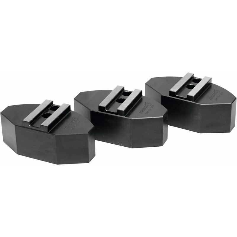 DescrizioneEsecuzione:Scanalatura fresata di precisione e dentatura rettificata di precisione, esecuzione brunita.Uso:Serraggio completo con deformazione minima.Materiale:Prodotto di qualità in 16MnCr5.Per:Mandrini autocentranti Schunk, Röhm e altre marche.Accessori speciali:Tasselli n. art. 313505 − 313605.Nota:Per l'adattamento al mandrino autocentrante, si prega di controllare tipo di dentatura, larghezza scanalatura (D) e distanza dei fori (a, b). Morsetti in alluminio, su richiesta.Dati tecnici Per tipo mandrino 250 mm Lunghezza L 80 mm Larghezza B 180 mm Altezza H 70 mm Distanza fori a 30 mm Distanza fori b 28 mm Larghezza cava D 21 mm Tipo di prodotto Ganasce per mandrini autocentranti a forte serraggio Codice articolo 313435 250 EAN / GTIN 2050001929525 Codice del produttore 0169103