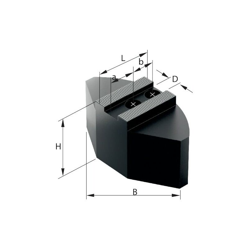 DescrizioneEsecuzione:Scanalatura fresata di precisione e dentatura rettificata di precisione, esecuzione brunita.Uso:Serraggio completo con deformazione minima.Materiale:AlluminioPer:Mandrini autocentranti Schunk, Röhm e altre marche.Accessori speciali:Tasselli n. art. 313505 − 313605.Nota:Per l'adattamento al mandrino autocentrante, si prega di controllare tipo di dentatura, larghezza scanalatura (D) e distanza dei fori (a, b). Morsetti in alluminio, su richiesta.Dati tecnici Per tipo mandrino 165 mm Lunghezza L 59,5 mm Larghezza B 120 mm Altezza H 58 mm Distanza fori a 22 mm Distanza fori b 22 mm Larghezza cava D 17 mm Tipo di prodotto Ganasce per mandrini autocentranti a forte serraggio Codice articolo 313437 165 EAN / GTIN 2050001929549 Codice del produttore 0170100