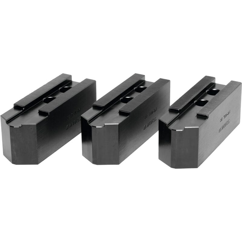 Bisellati per ⌀ piccoli. Scanalatura fresata di precisione e dentatura rettificata di precisione, esecuzione brunita. Materiale: Prodotto di qualità in 16MnCr5. Per: Mandrini autocentranti Schunk, Röhm e altre marche. Accessori speciali: Tasselli n. art. 313505 − 313605. Nota: * Per l'adattamento al mandrino autocentrante, si prega di controllare tipo di dentatura, larghezza scanalatura (D) e distanza dei fori (a, b). * Morsetti in alluminio, su richiesta. Dati tecnici Per codice a colori Mandrino autocentrante e ganasce Schunk Tipo di prodotto Ganasce per mandrini autocentranti a forte serraggio Altezza H, mm 40 Larghezza B, mm 42 Lunghezza L, mm 125 Distanza fori a, mm 30 Larghezza cava D, mm 16 Distanza fori b, mm 30 Per tipo mandrino, mm 250 Per filettatura DIN 912 M12