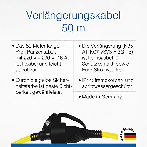 As - Schwabe 60356 - Cavo di prolunga da esterni, 50 m, K35 AT-N07 V3V3-F 3G1,5, IP44, colore: Giallo