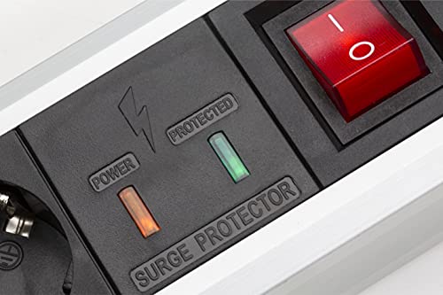 As - Schwabe, Ciabatta multipresa in alluminio contro le sovratensioni, con interruttore e protezione di sicurezza per bambini, 10 prese, 1.5 m H05VV-F 3G1.5, IP20-18350