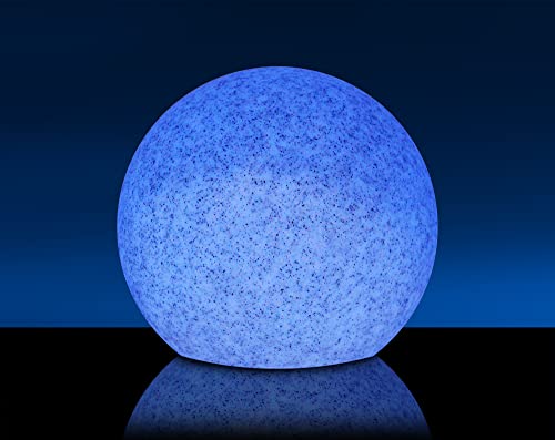 SCHWAIGER -660142- Globo solare a LED RGB per esterni in look pietra, diametro 25 cm, con sensore di luminosità, colori di luce bianco caldo e RGB, IP44