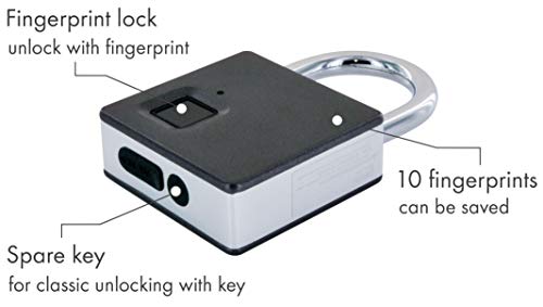 SCHWAIGER 715958 Lucchetto intelligente con impronta digitale elettronico acciaio Impronta digitale impermeabile in lega di zinco USB-C ricaricabile con cavo USB-C e chiave di emergenza