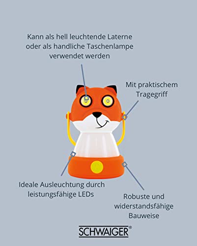 SCHWAIGER CALF100 511 Lampada da campeggio design animale volpe lampada per bambini lanterna torcia 3 luci 10 ore di autonomia LED a batteria