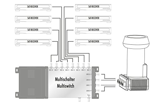 Sistema di ricezione per l'installazione di sistemi SAT multisubacque in combinazione con un multiswitch, distribuzione a 4 vie
