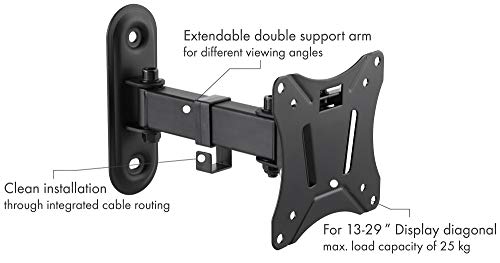 SCHWAIGER 9390 Supporto a Parete per TV Supporto per schermi da 13 a 29 Pollici Fino a 25 kg Girevole in Alluminio Verniciato a Polvere Inossidabile incl. Accessori di Montaggio