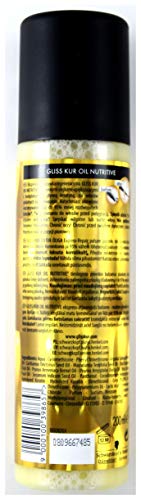 Questa è la prima formula da Gliss Kur, che contiene 7 olii nutritivi: olio di marula,olio d'argan, olio di sesamo e olio di mandorle, olio di oliva, olio di nocciolo di albicocca e olio di macadamia.