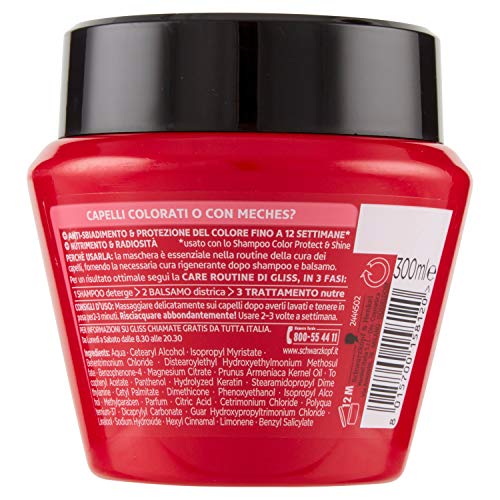 Schwarzkopf, Gliss Maschera Color Protect & Shine, per capelli colorati o con meches, Pacco da 3 x 300ml