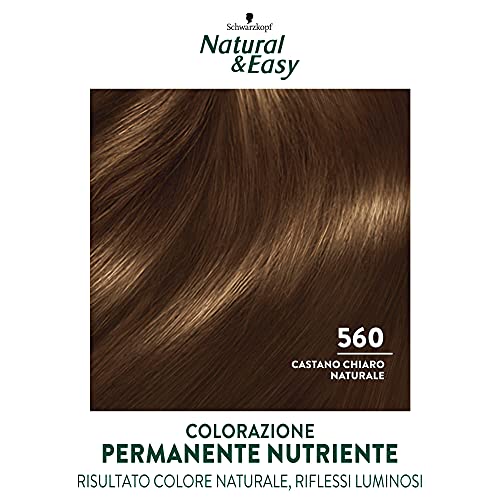 Schwarzkopf, Natural & Easy, Tinta per Capelli Permanente, Nutriente, con Olio d'Oliva ed Estratto di Lavanda, Copertura dei Capelli Bianchi, Tonalità 560 Castano Chiaro Naturale, 6 pz