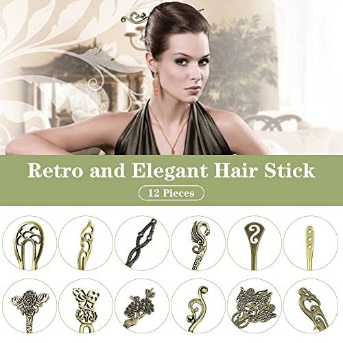 SCHYIDA 12 Pezzi Bastoncini Capelli Cinesi Forcina Cinese Vintage Colore di Rame Bastoncini Fermacapelli con Elementi Retrò Classici per Decorare i Capelli e Fissare le Acconciature