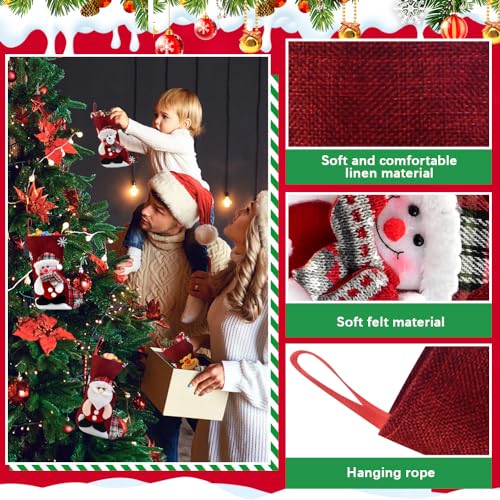 【Morbide e durevoli】Le calza di natale da appendere sono realizzate in lino di alta qualità, morbido e confortevole, forte e durevole, non facile da danneggiare e riutilizzabile. Il motivo decorativo della calza natalizia è in morbido feltro, fissato con colla, non facile da staccare.