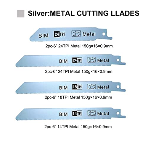 【Ampie applicazioni】Il set di combinazione offre una selezione di lame per la demolizione come il taglio di piastre di recinzione, la ristrutturazione di scale di casa o vecchie, metallo, tubo di plastica. (Consiglio: non adatto per metallo troppo spesso).