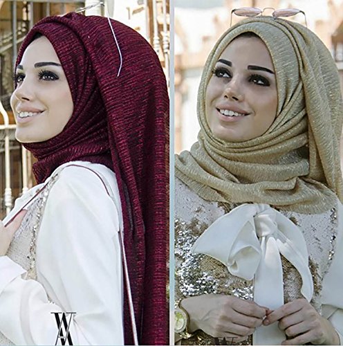 Marchio GFM Molto bello Lussuoso luccicante Sciarpa scintillante o Hijab. Il tessuto è morbido con texture crepe. Dimensioni approssimative: Lunghezza: 180 cm Larghezza 70 cm. Materiale: poliestere. Può essere usato come Hijab o Sciarpa da sera, Matrimoni, Proms, Damigelle o in occasioni speciali. Orlo a taglio libero non cucito. Questo tipo di materiale non ha bisogno di cuciture per l'orlo