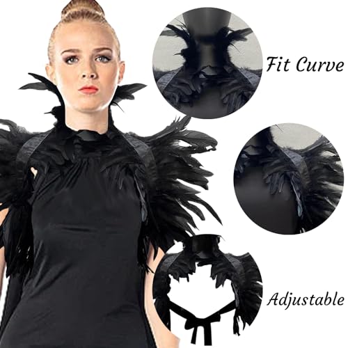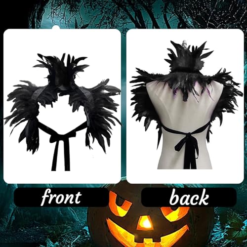 Scialle gotico di piume, Mantello di Piume Nere, Sciarpa di Piume Nere Scialle, Vittoriano Shrug Scialle di piume naturali Colletto, per Halloween Cosplay Party abito da sera