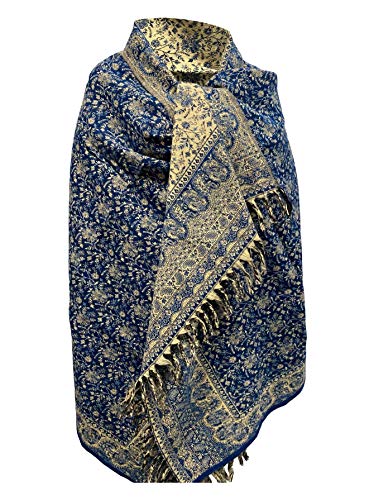 Scialle invernale in pura lana di Yak, con motivo floreale, colore: blu scuro