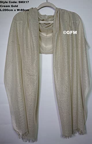 GFM Scialle della sciarpa delle damigelle d'onore di sera di cerimonia nuziale scintillante (SMX17), Crema Con Oro, L