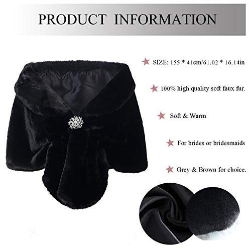 Yean - Scialle da sposa in pelliccia sintetica, da donna Nero Taglia unica