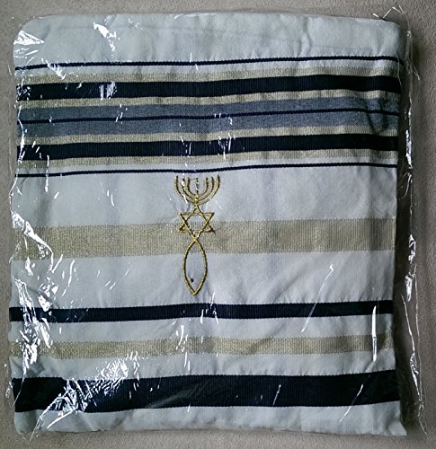 Scialle di preghiera progettato dal principale centro di preghiera cristiana in lettere ebraiche. Realizzato in acrilico, è lungo 182,9 cm e largo 55,9 cm. Viene fornito in una borsa con cerniera dello stesso materiale di alta qualità.