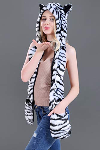 Sciarpa Cappello Guanti Donna 3 in 1 Cappelli Animale Peluche Inverno Sciarpe Pelliccia Sintetica Lugo Mobido Berretto con Orecchie Bambini Adulti Scialle Cappelli Guanto Regalo di Natale Compleanno