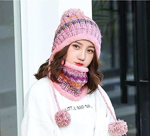 Sciarpa per Cappello Lavorata a Maglia da Donna Set Cappello da Berretto con PON PON all'Uncinetto Caldo e Caldo con Fodera in Pile, Rosa